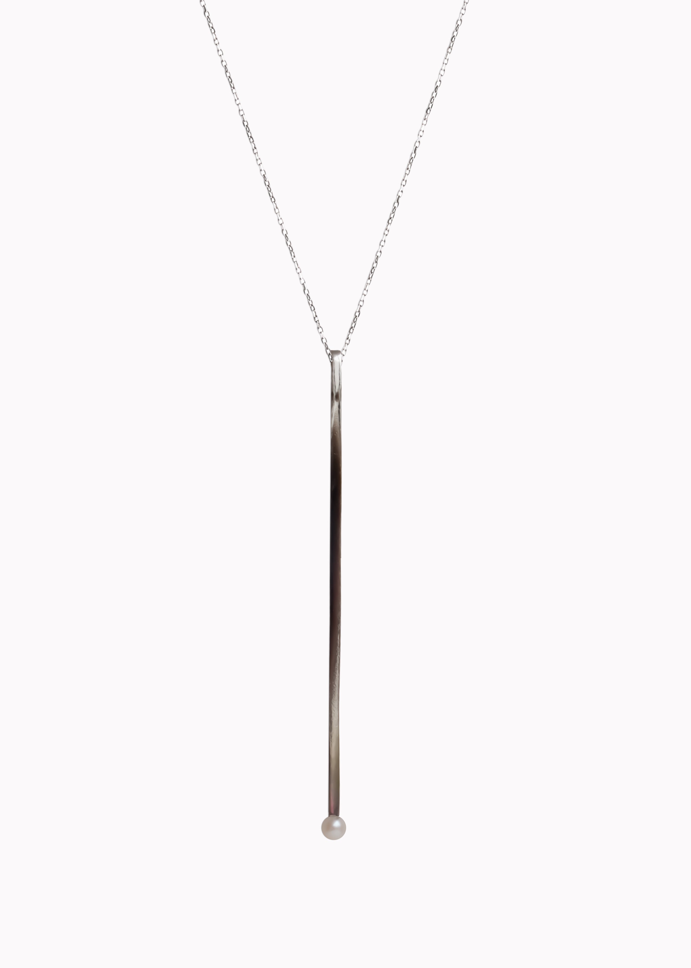 Vertical Bar Pearl Necklace Sterling Silver