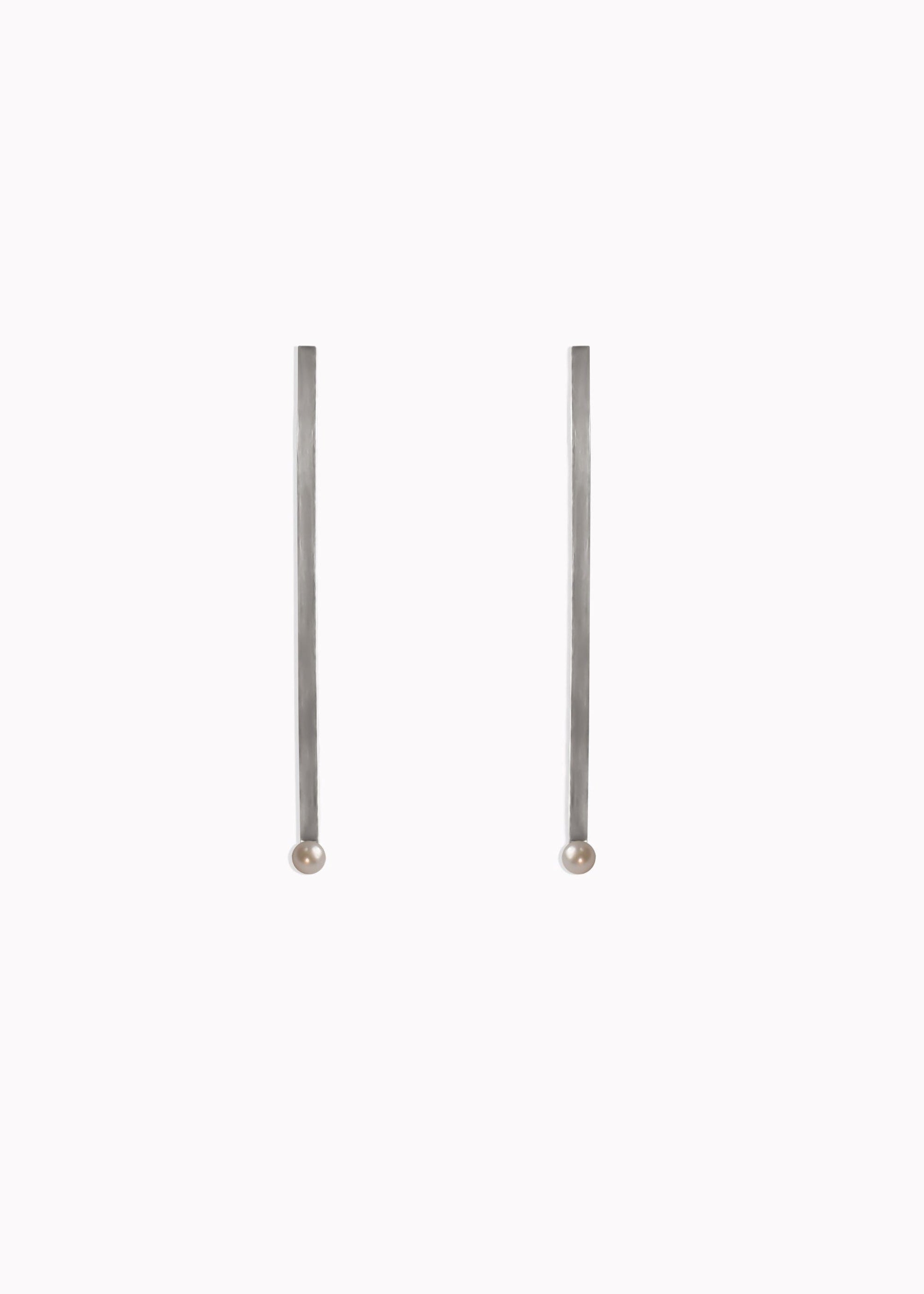 Vertical Bar Pearl Earrings Sterling Silver
